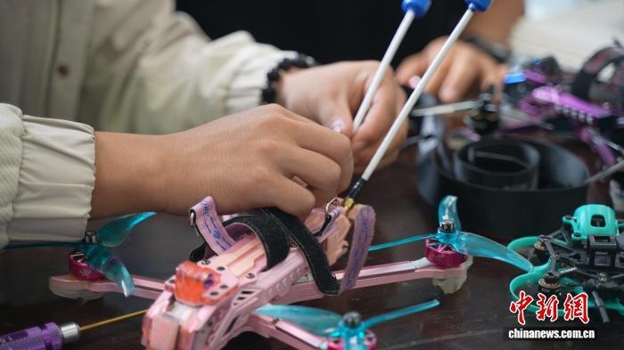 图为兰州交通大学学生创新制作的无人机,并在大赛中获奖。刘玉桃 摄