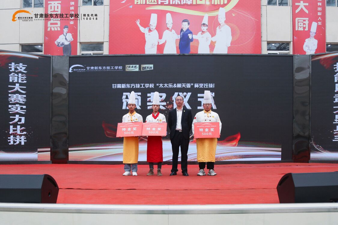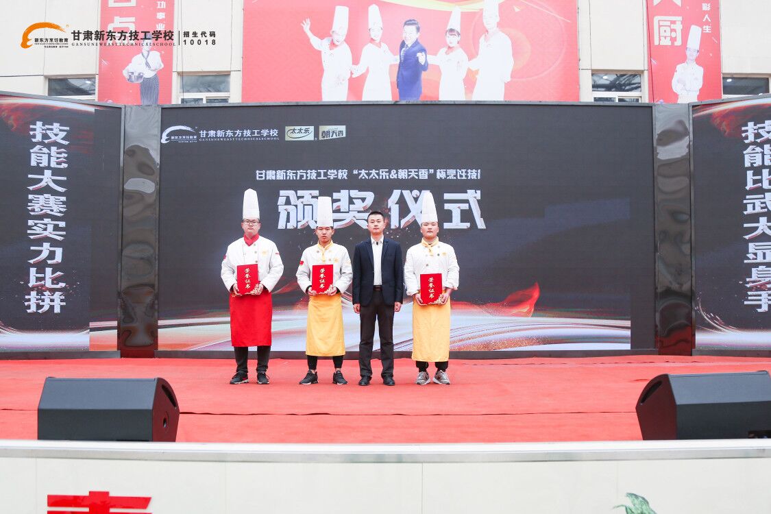 匠心传承,东方味道;食材荟萃,群英争锋。4月1日,甘肃新东方“太太乐&朝天香”杯烹饪技能大赛颁奖典礼在学校教学大厅隆重举行!学校、企业相关领导出席此次颁奖典礼,与师生欢聚一堂,共襄庆典。