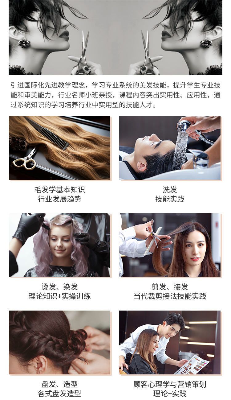 培养具有创新思维能力、高级审美能力,有专业美发造型技能的高级形象设计人才,毕业后可胜任高端形象定制、造型设计师、形象设计师、美发师、染烫师等工作。